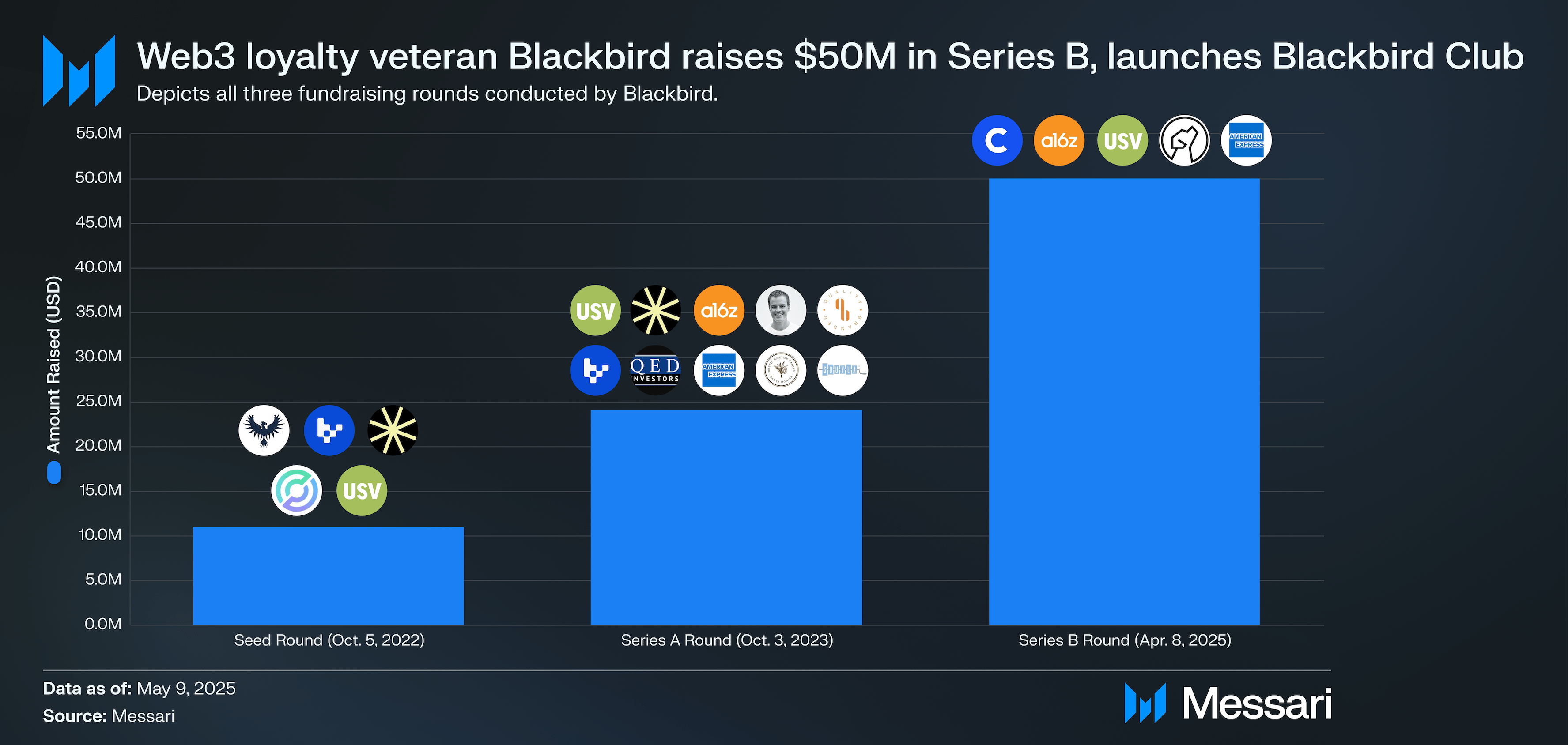 The round, led by Spark Capital with backing from Coinbase Ventures, Amex Ventures, Andreessen Horowitz, and Union Square Ventures, brought Blackbird’s total funding to $85 million and was followed by meaningful post-raise updates from Blackbird Labs.