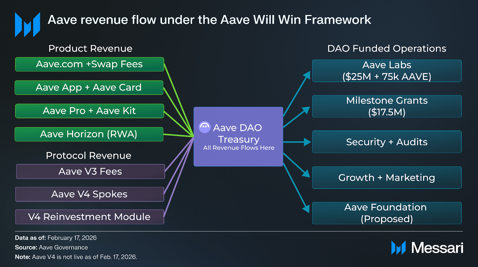 The trade-off is that Labs gives up its independent revenue stream and is funded by the DAO, while the DAO gains a diversified, growing revenue base. AAVE tokenholders get something they’ve rarely had in DeFi, a direct, legible claim on the full economic output of the ecosystem’s dominant lending protocol.