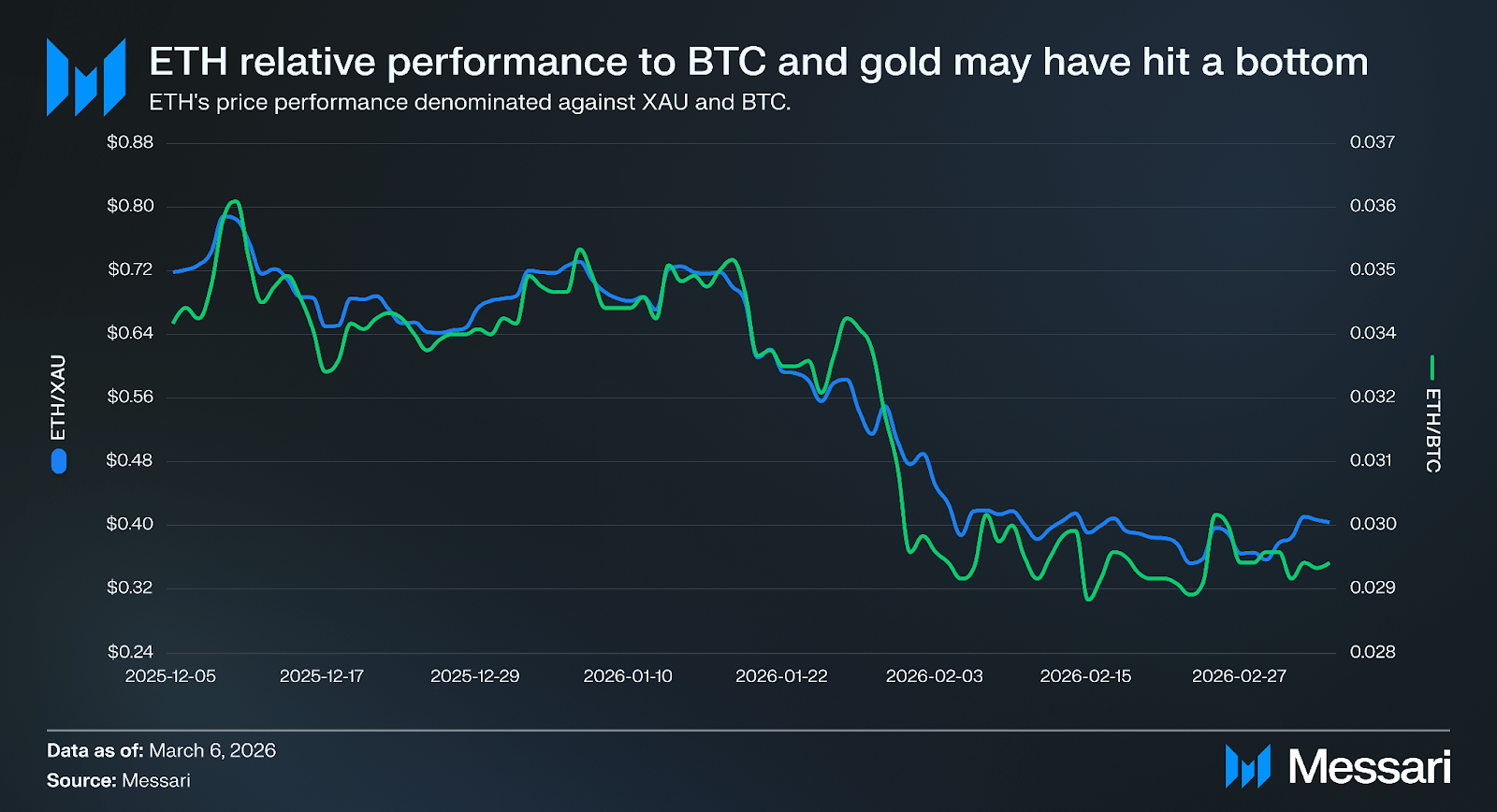 Furthermore, the ETH/BTC ratio has been in a persistent downtrend, bottoming in a narrow range between 0.02 and 0.03 (levels not seen since early 2021). Ethereum dominance sits at just 10.5% of the total crypto market cap. However, things are starting to shift. The ETH/BTC RSI has crossed above 50, the MACD histogram turned positive, and the 20-day EMA recently crossed above the 50-day. None of this guarantees a sustained reversal, but the combination of extreme relative undervaluation and a structural bid from entities like BitMine and Harvard suggests the ratio may have found a floor. Tom Lee, the chairman of Bitmine, put it bluntly: "The price of ETH is not reflective of the high utility of ETH and its role as the future of finance. Hence, we continue to buy ETH."