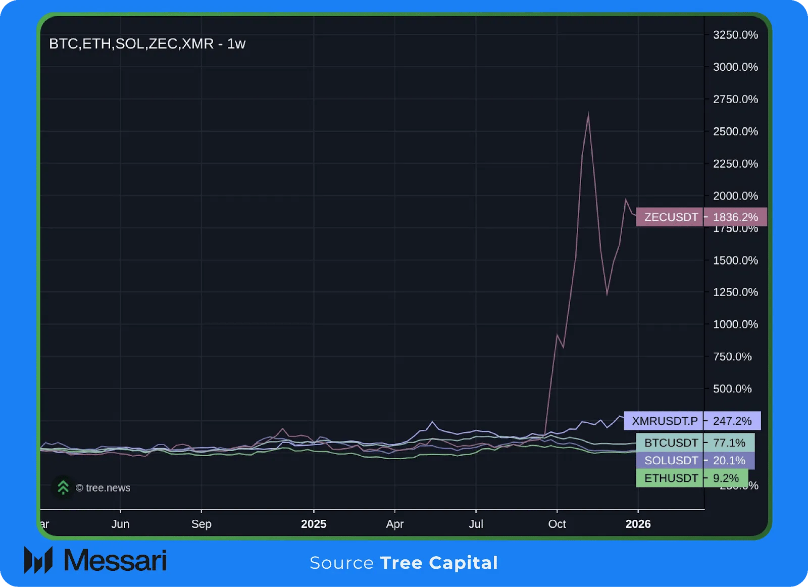 Naturally, that renaissance is currently being incubated in crypto. Proof-of-Work privacy L1 tokens saw a significant re-rate, with tokens like ZEC and XMR up 750% and 118% YTD, respectively. Private, encrypted money is the goal, but these expressions are volatile and might not be for everyone. While private, encrypted money is the goal, these expressions are volatile and limit capital optionality. Apps like the Zashi wallet for ZEC are steps in the right direction to improve the user experience, but do not solve for the asset’s volatility.