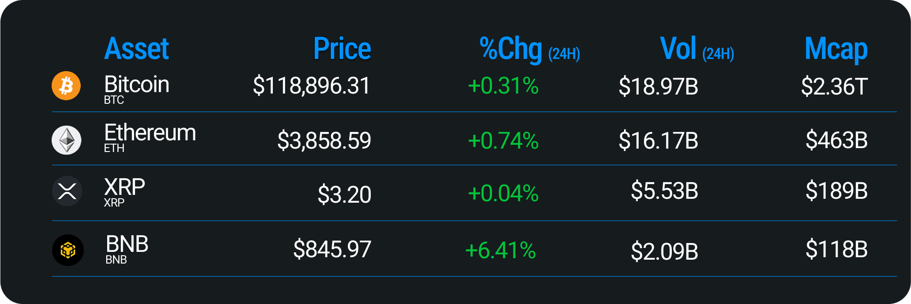 Risk Rally - Bitcoin zooms to $120K, ETH nears $4K as Trump’s EU tariff deal lifts risk sentiment.